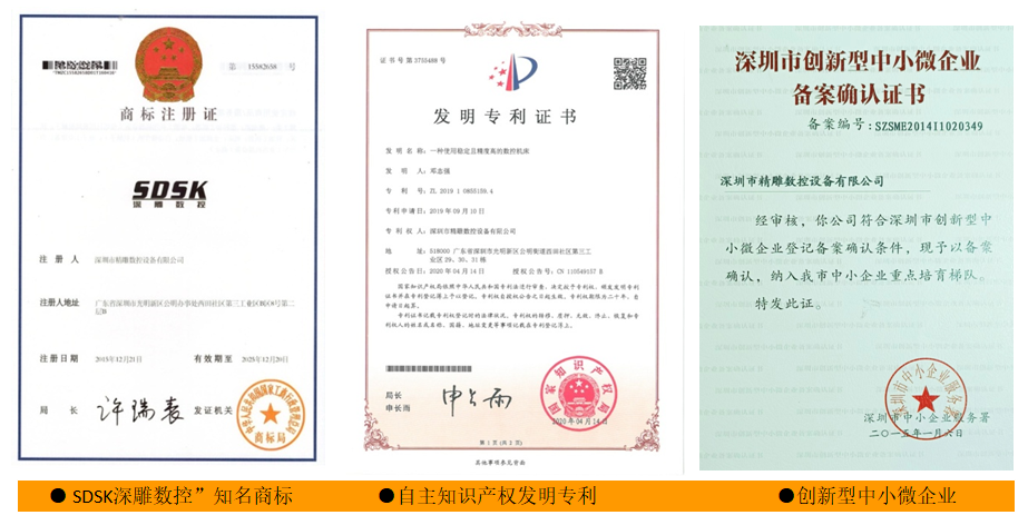 深圳精雕現有實用新型專利80多項、外觀專利12項、發明專利5項,實現了“自主研發”“自主創新”“自主品牌”的三個維度高質量發展。