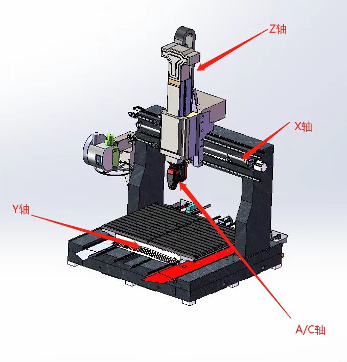 2. 運動方式為Y軸工作臺前后運動,X軸左右運動,Z軸上下運動A軸可±115·旋轉、C軸可±540·旋轉。